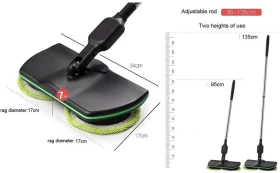ممسحة لاسلكية إلكترونية - ممسحة دوارة لا سلكية يمكن استخدامها سواء رطبًا او جافًا ، ومصممة تلقائيًا بالكامل لتنظيف الأرضية أو تلميعها باستخدام محرك دوار عالي السرعة 300 لفة في الدقيقة.تأتي هذه الممسحة الثقيلة مع بطارية Li-MH مدمجة قابلة لإعادة الشحن بقوة 2200 مللي أمبير في الساعة ، والتي لديها القدرة على تنظيف الأرضية لمدة 50 دقيقة تأتي الممسحة معاها 4 غيارات (2 للتنظيف + 2 للتلميع) قابلتين للغسل قابلة للتبديل ، مما يتيح لك توفير المال من شراء ملحقات بديلة جديدة