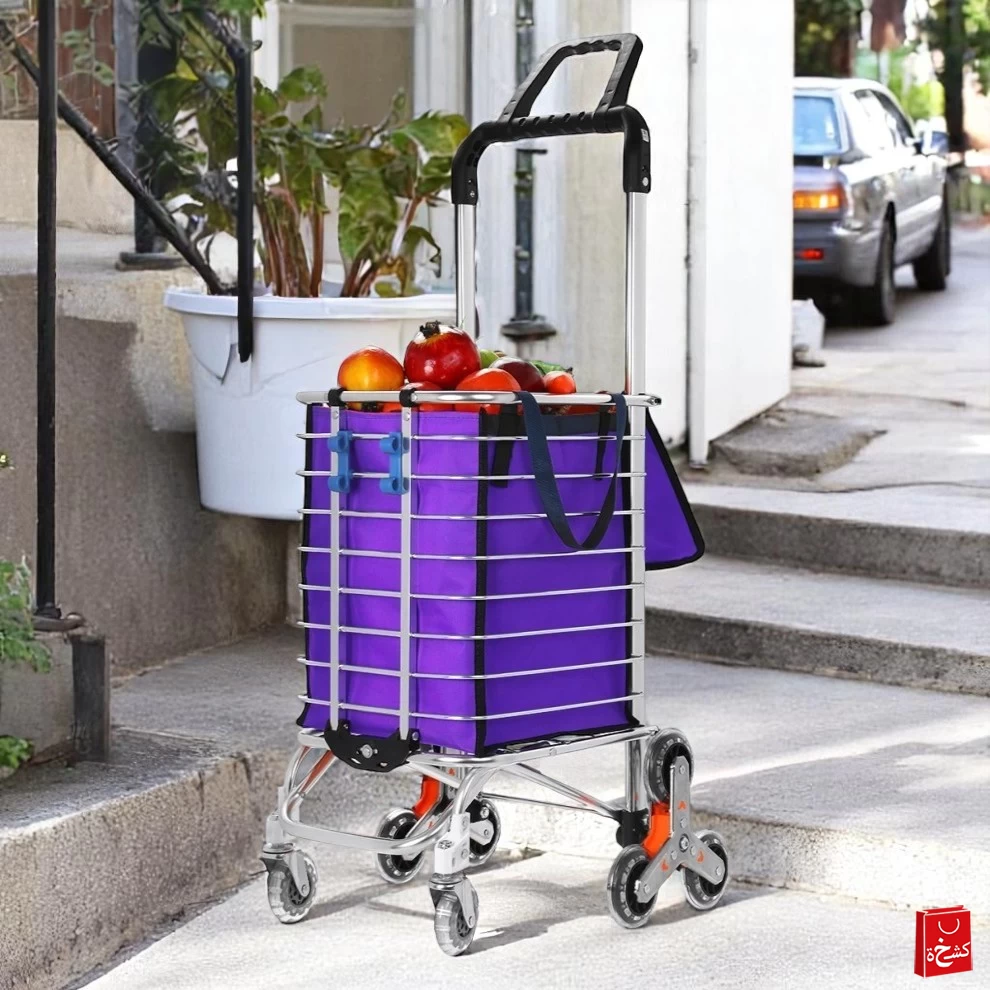 عربة تسوق قابلة للطي للخدمة الشاقة – تصميم ثلاثي العجلات للتسلق بسهولة وثبات عالي 🛒🚀