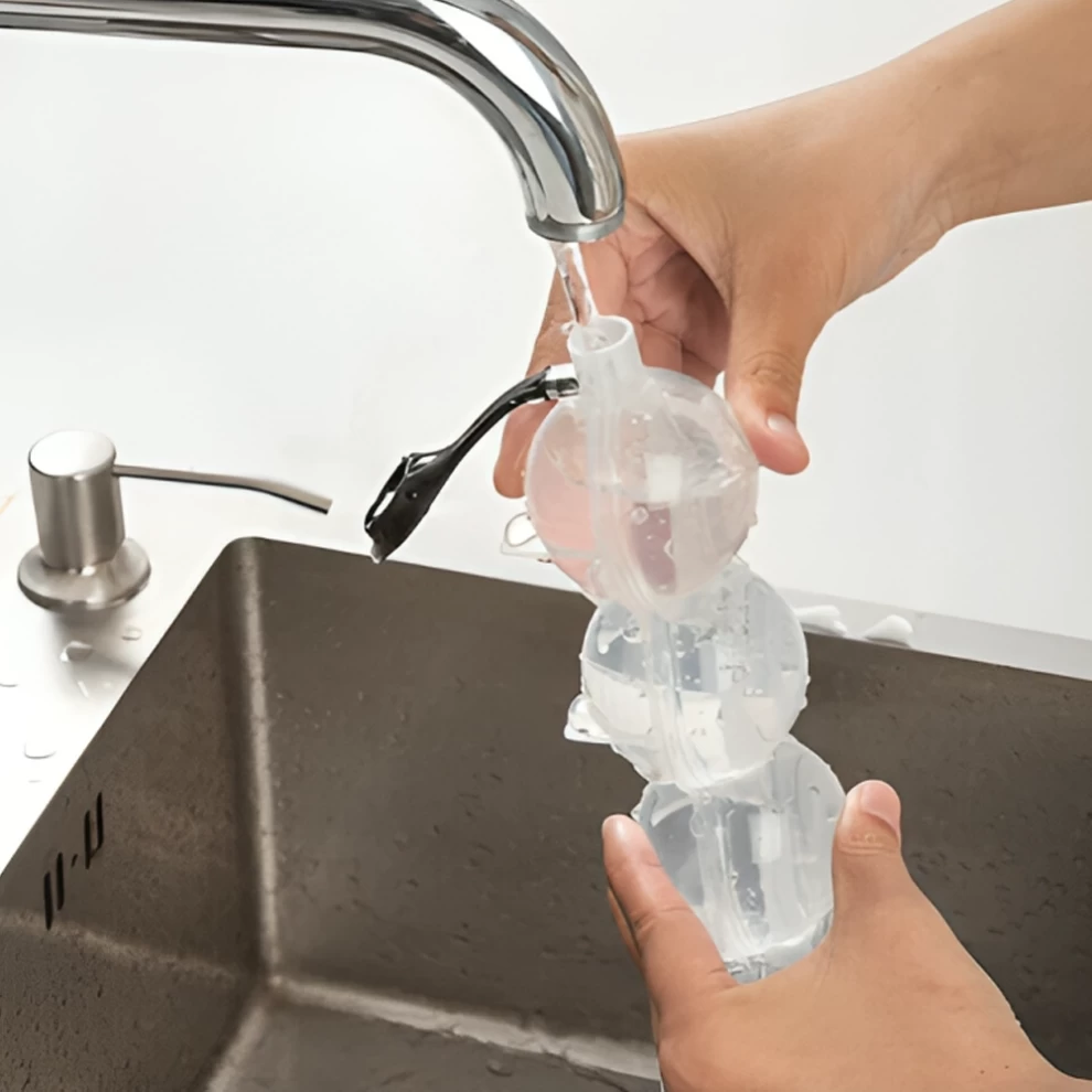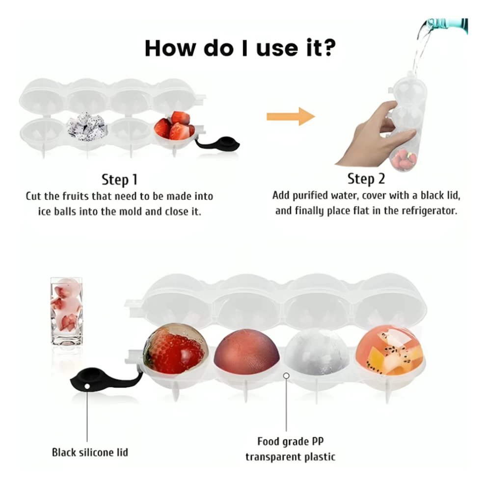 سهل الاستخدام – فقط املأ القالب بالماء أو العصير، جمده، ثم أخرج الكرات بسهولة.