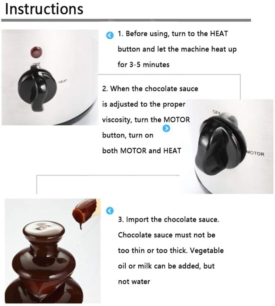 تشغيل سهل – فقط سخّن، صب، واستمتع بنافورة الشوكولاتة.