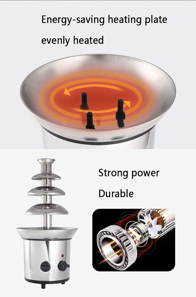 اصنع لحظات سحرية وحلويات لذيذة مع آلة نافورة الشوكولاتة—الإضافة المثالية للحفلات، حفلات الزفاف، التجمعات العائلية، والمناسبات الخاصة. سواء كنت تستمتع بأمسية دافئة في المنزل، تستضيف حفلة ممتعة، أو تضيف لمسة من الفخامة إلى مناسبة راقية، فإن نافورة الشوكولاتة المصنوعة من الفولاذ المقاوم للصدأ ستجعل كل مناسبة أكثر متعة ولذة. سهلة الاستخدام والتنظيف، مما يسمح لك بغمس الفواكه، المارشميلو، البسكويت والمزيد للحصول على تجربة شوكولاتة غنية ولا تُنسى مع العائلة والأصدقاء!