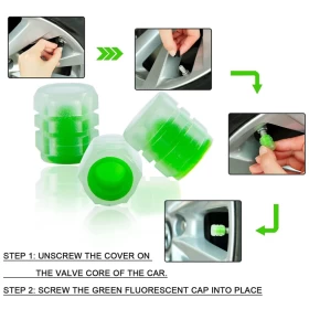 2 × غطاء صمام إطار مضيء (لون أخضر)