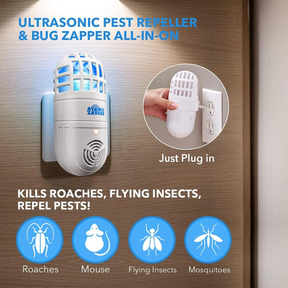 جهاز Atomic Zapper قاتل البعوض وطارد الحشرات والفئران بالموجات فوق الصوتية-كهربا