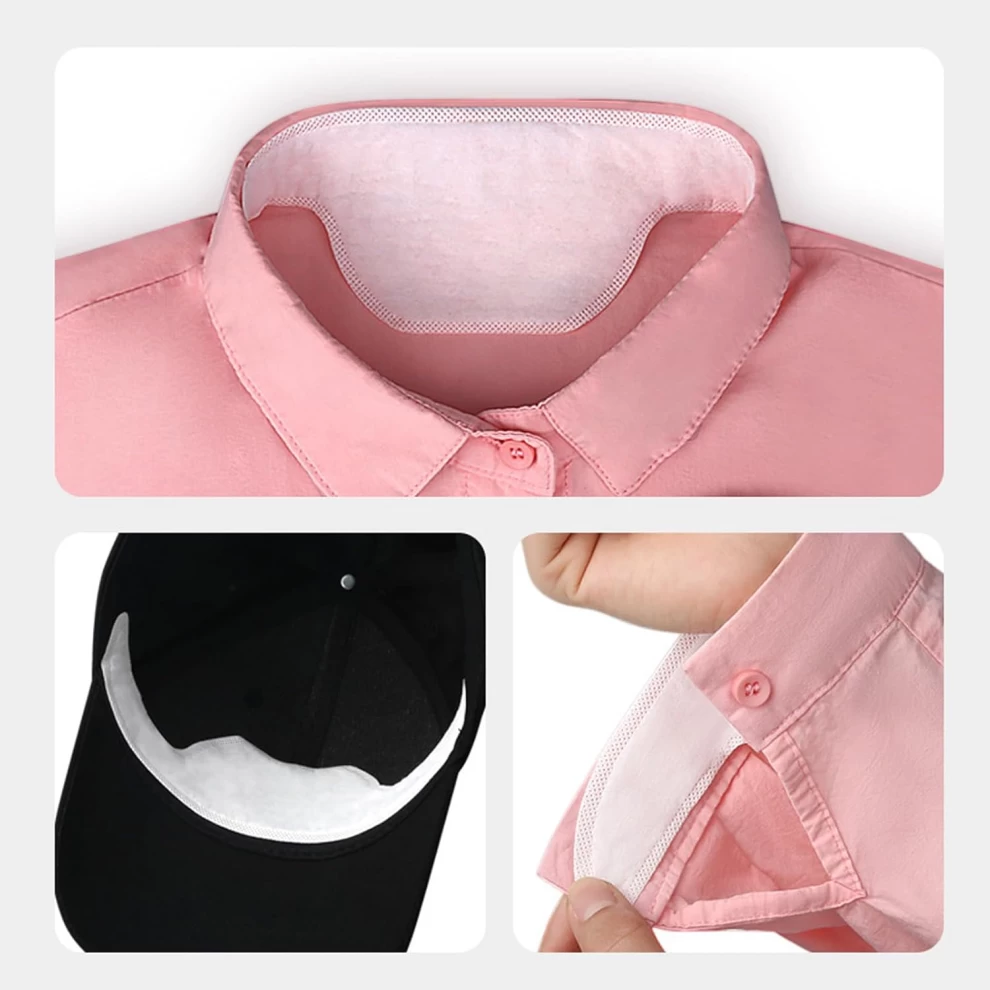 لاصقات الياقة الماصة للعرق – حماية كاملة من البقع والتعرق (عبوة 50 قطع) 🌟