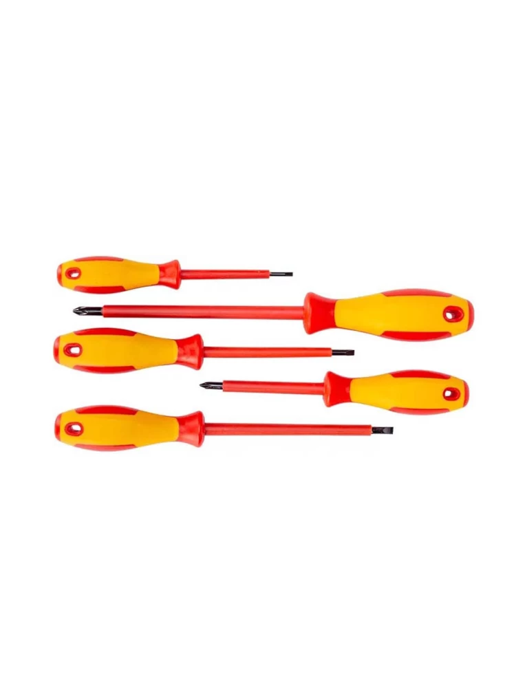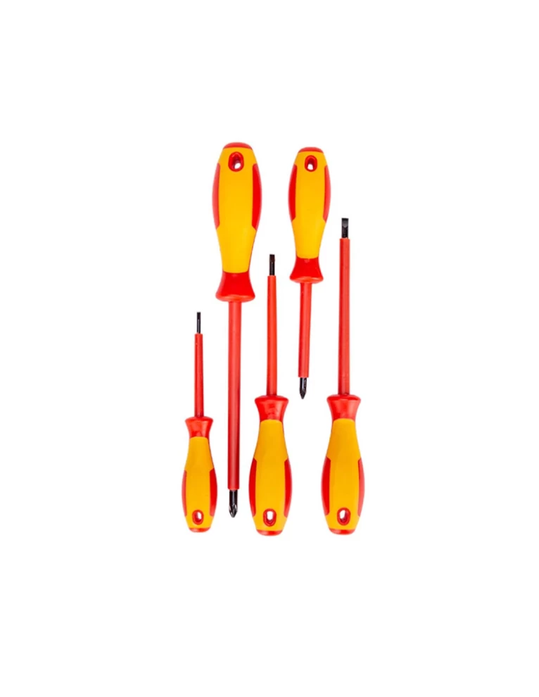 • طقم مفكات البراغي المعزول هذا هو الخيار الاقتصادي المثالي لجميع احتياجاتك الخاصة بالإصلاح والتجميع مع 5 قطع متضمنة