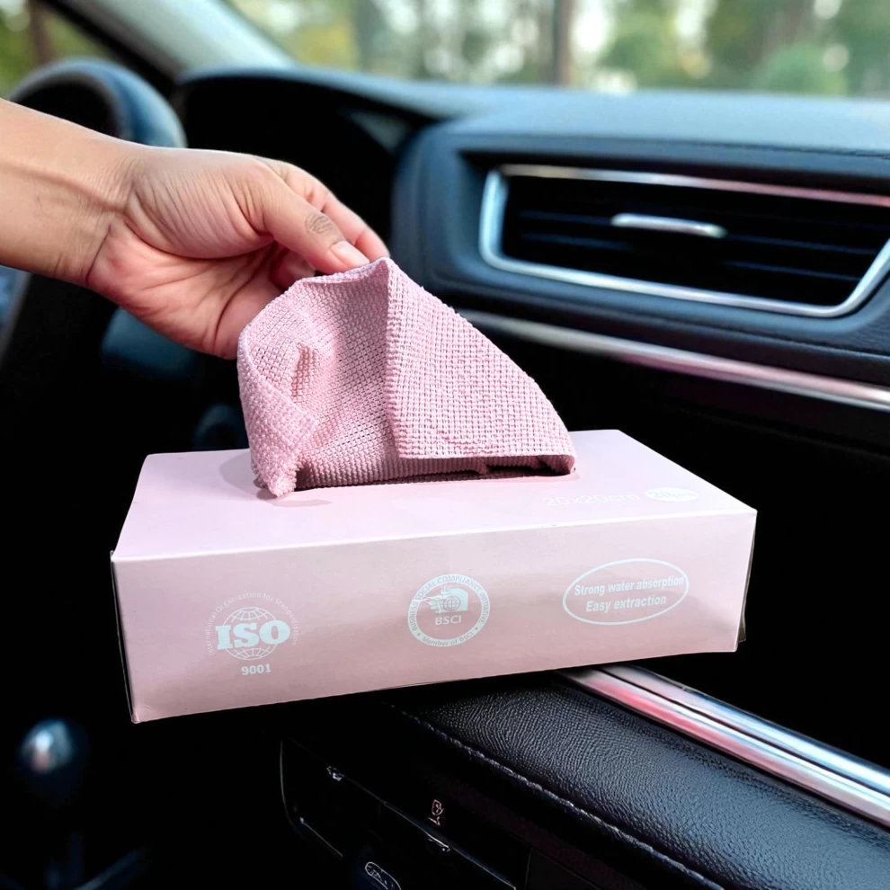 🧼 طقم 20 قطعة من قماش المايكروفايبر للتنظيف مع علبة سحب – 21×11×3 سم