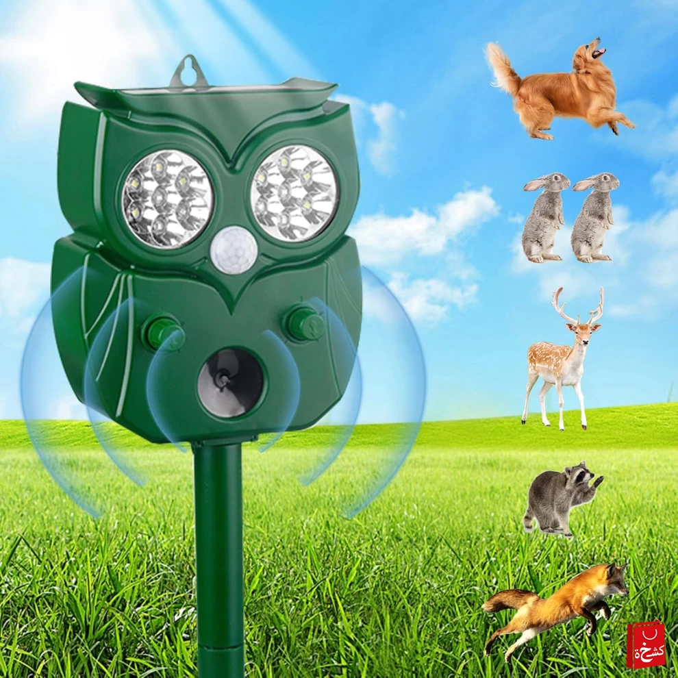 أبعد الحيوانات غير المرغوب بها بطريقة إنسانية باستخدام هذا الجهاز بالطاقة الشمسية. يجمع بين الإضاءة، كاشف الحركة، والموجات فوق الصوتية لطرد القطط، الكلاب، القوارض والمزيد – مثالي للحدائق والشرفات.