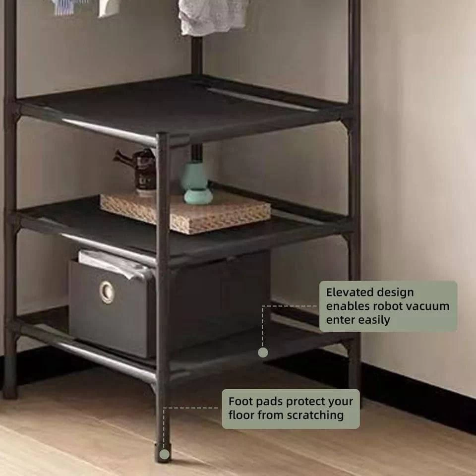 تخزين متعدد الوظائف – مزودة بأماكن للتعليق، أرفف للتخزين، وخطافات جانبية للملابس، الأحذية، القبعات، والإكسسوارات.