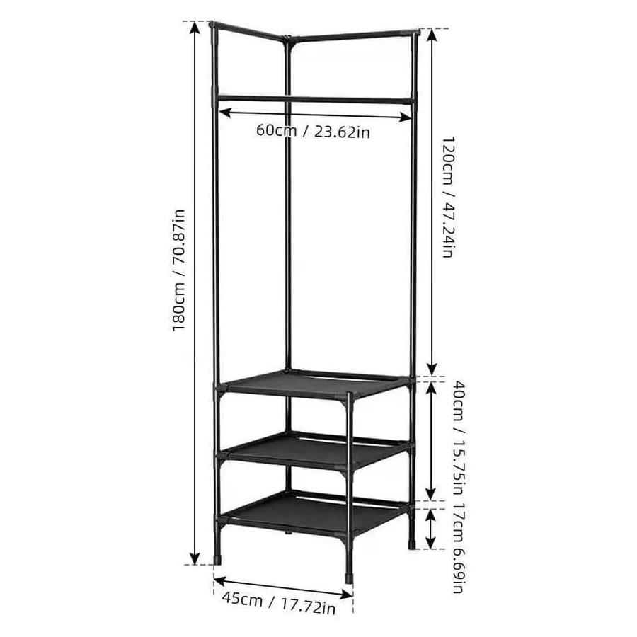 حافظ على ترتيب وتنظيم منزلك مع علاقة الملابس الزاوية متعددة الوظائف، المصممة خصيصًا لتوفير المساحة مع منحك أقصى سعة تخزين. مصنوعة من فولاذ كربوني عالي الجودة، مما يجعلها متينة، مقاومة للصدأ، وأنيقة، مما يجعلها مثالية لأي غرفة في المنزل أو المكتب. سواء كنت بحاجة إلى علاقة للملابس، رف للأحذية، أو منظم للقبعات، الأوشحة، والحقائب، فإن هذا المنتج يستغل زوايا الغرفة بكفاءة دون شغل مساحة إضافية!