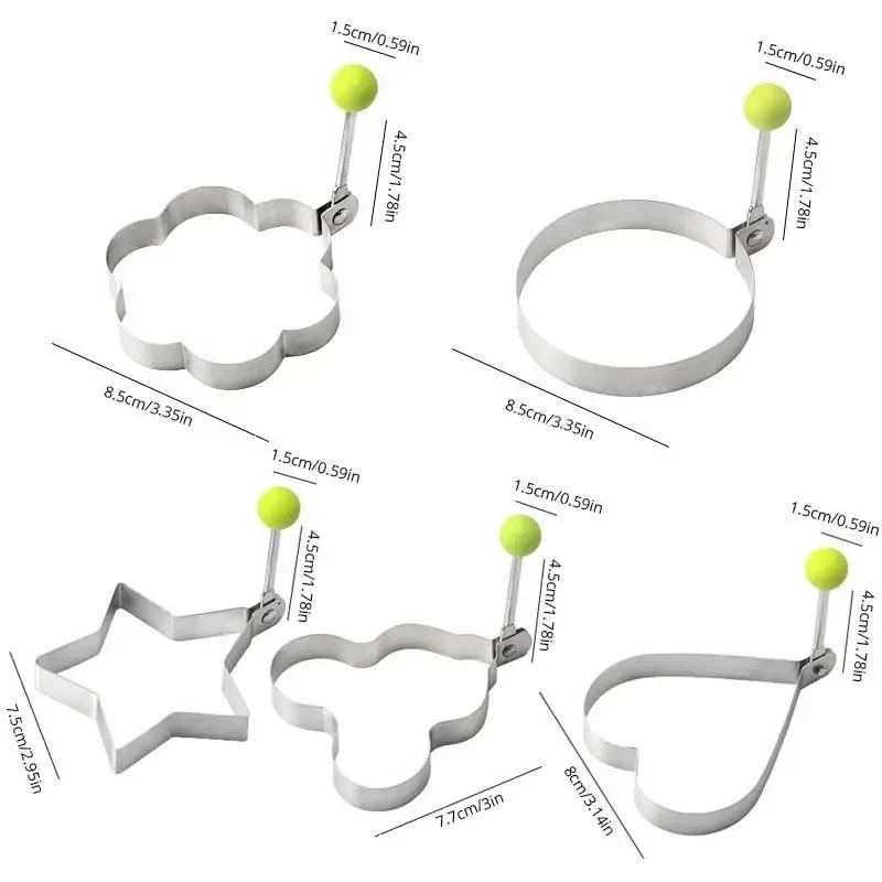 قالب بيض مقلي من الفولاذ المقاوم للصدأ و5 أشكال مختلفة