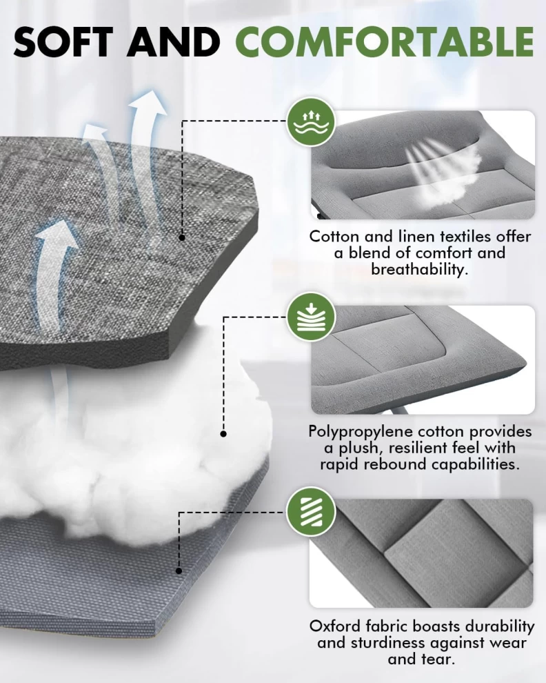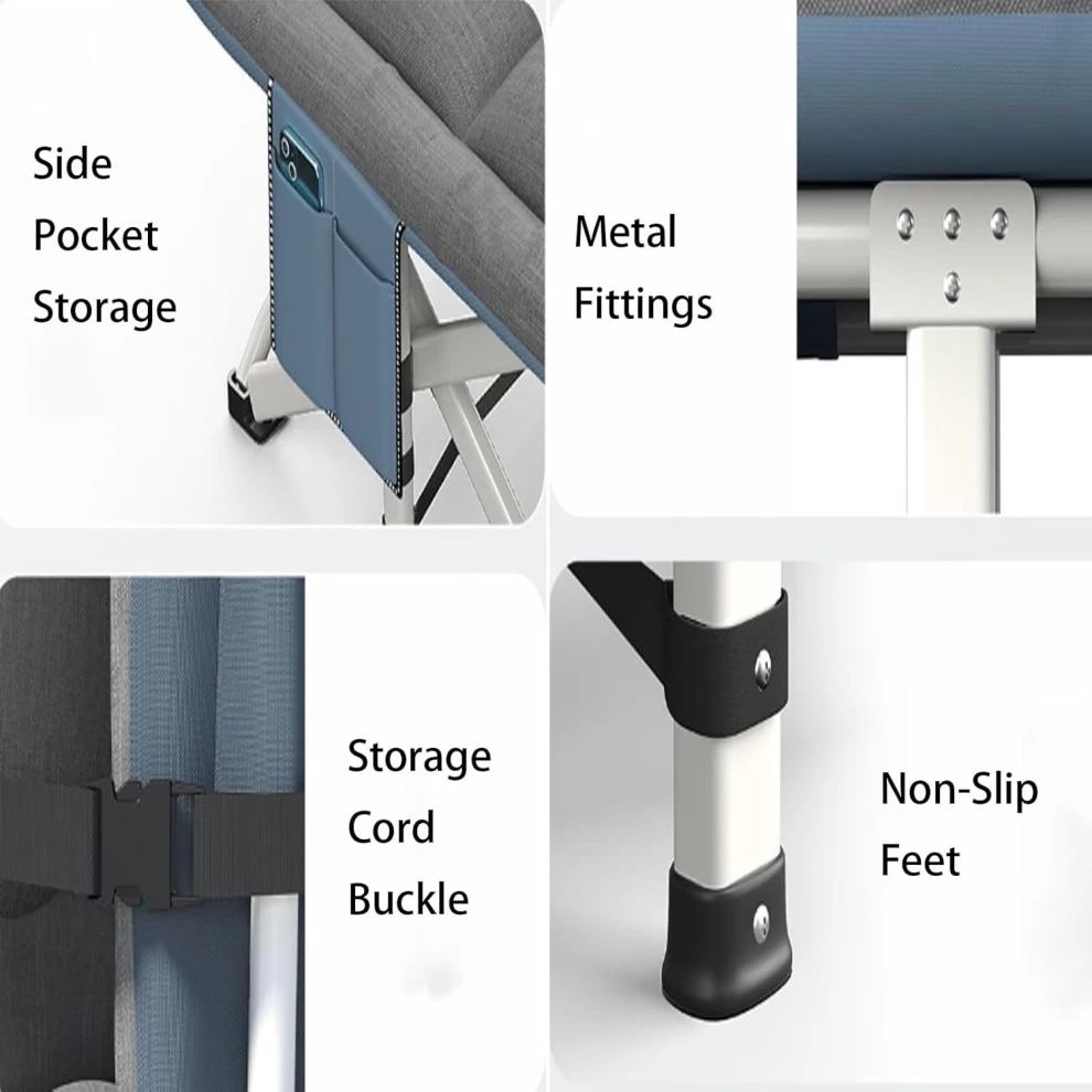 مع قدرة تحمل وزن تصل إلى 200 كغ، وفرشة قطنية ناعمة، وإطار متين مقاوم للصدأ، يتميز هذا السرير بالراحة والمتانة. يوفر ثلاثة أوضاع قابلة للتعديل تتيح لك الجلوس أو الاستلقاء أو النوم بسهولة، مما يجعله الحل المثالي للاسترخاء أثناء التنقل!