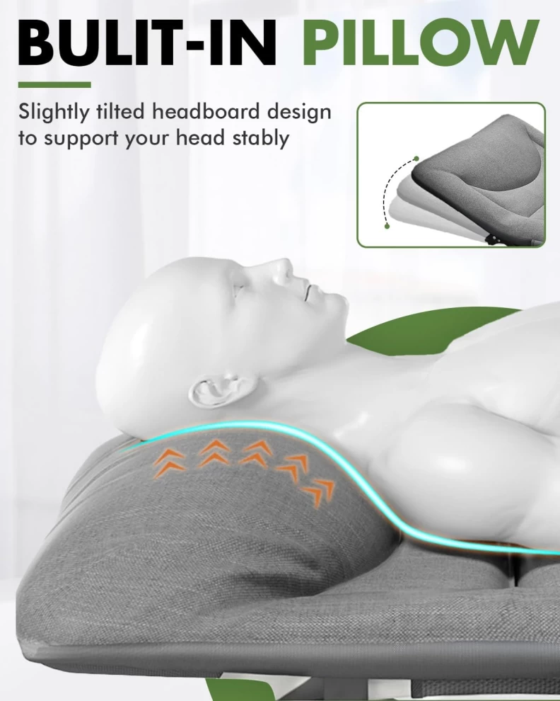 ✅ راحة فائقة: يتميز بمسند رأس من رغوة الذاكرة وفرشة قطنية للاستمتاع بالاسترخاء الفاخر. 😴