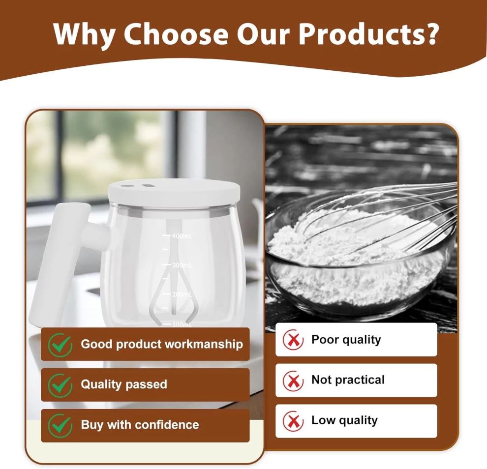 استمتع بمشروبات ممزوجة بسلاسة تامة مع هذا الكوب ذاتي التحريك سعة 400 مل! ☕🔄 ما عليك سوى الضغط على الزر، وسيقوم المحرك المدمج بتحريك قهوتك، أو شايك، أو حليبك، أو شوكولاتة ساخنة تلقائيًا - دون الحاجة إلى ملعقة! مثالي للمنزل، والمكتب، وحتى أثناء السفر، يجعل صباحك أسهل وأكثر متعة. 🚀✅