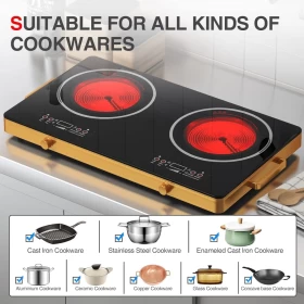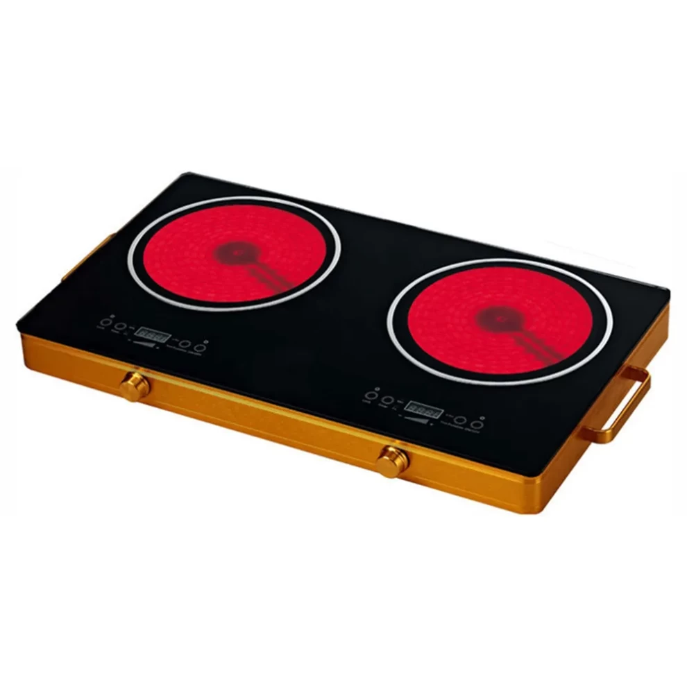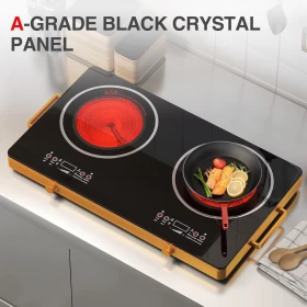 اطبخ بذكاء وسرعة أكبر مع هذا الموقد السيراميكي الكهربائي، الذي يتميز بشعلتين بدون لهب، ولوحة تحكم باللمس، وشاشات رقمية للتحكم الدقيق في درجة الحرارة 🔥🍲. مثالي لجميع أنواع أواني الطهي، ويضفي هذا الموقد الأنيق لمسةً من الابتكار والأمان على مطبخك. 🏠👨🍳