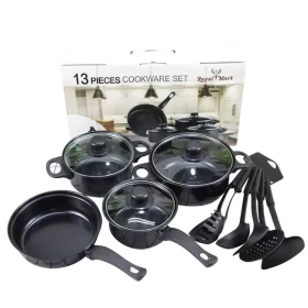 عدد القطع: 13 قطعة (قدور، مقالي، وأغطية)
