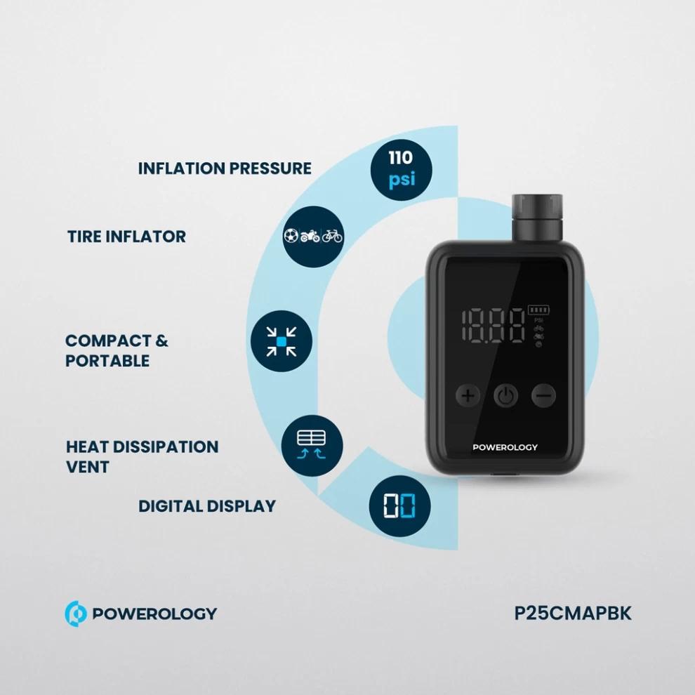 منفاخ إطارات باورولوجي صغير الحجم – هواء قوي في جيبك!