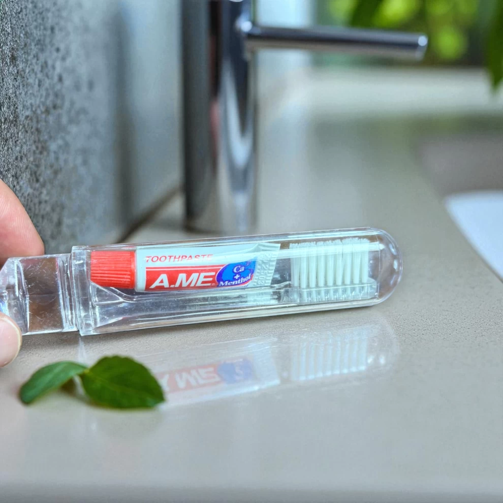 فرشاة أسنان قابلة للطي مع معجون للسفر والعناية بالفم