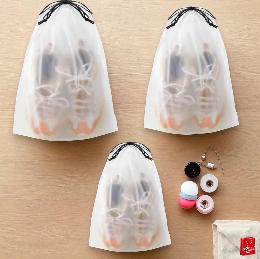 👟🧳 شنط أحذية شفافة للسفر – ٣ مقاسات مقاومة للماء بسحاب سحب