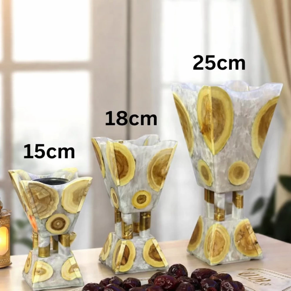 • 🧱 الخامة: راتنج فاخر + وعاء داخلي معدني
