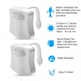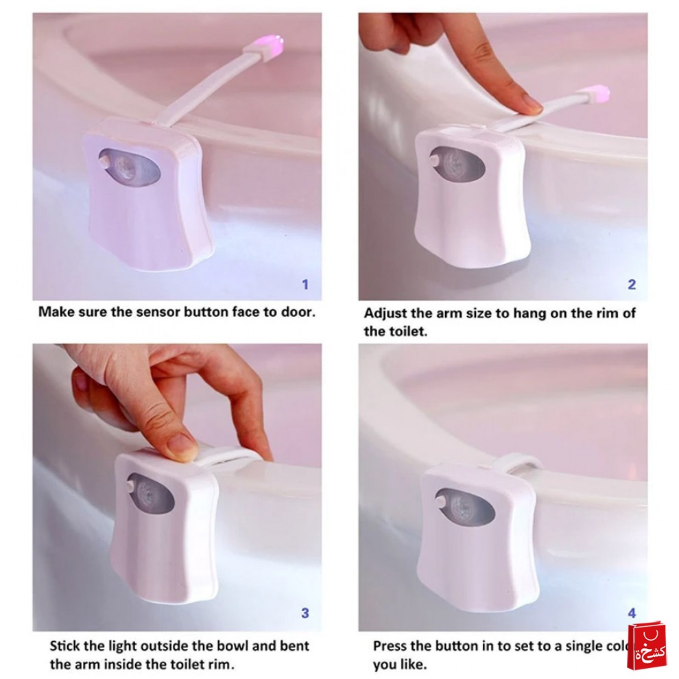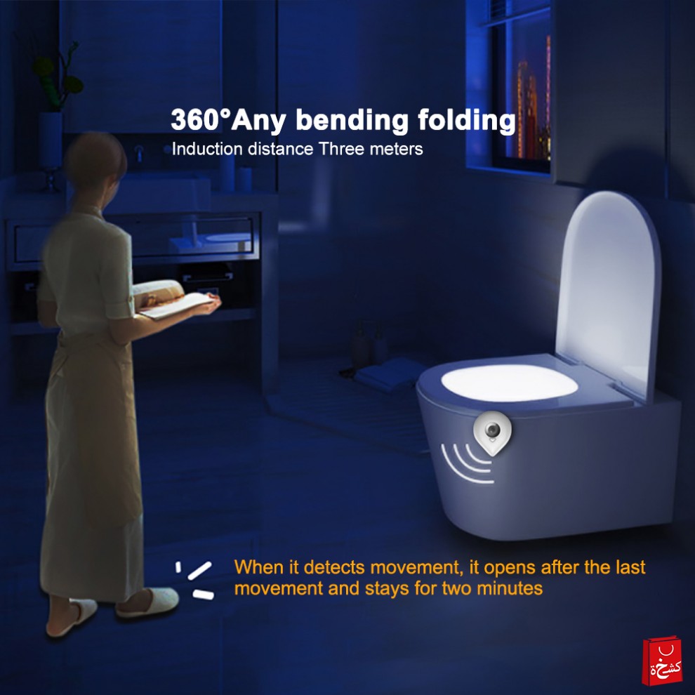 اجعل زيارات الحمام في الليل أكثر أمانًا وراحة مع ضوء المرحاض الذكي! يُضيء تلقائيًا عند الاقتراب، ويتغير بين 8 ألوان مريحة، كما يتميز بتصميم أنيق وسهل التركيب.