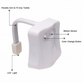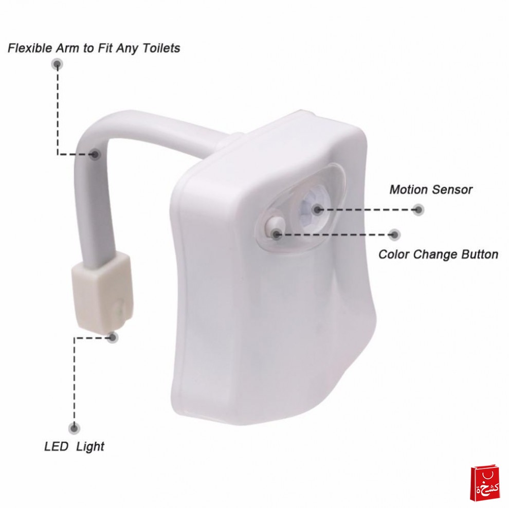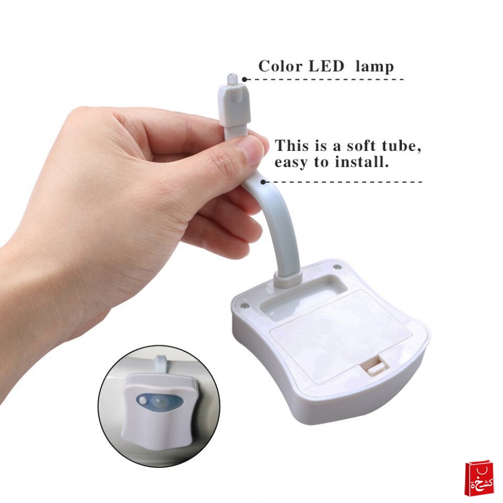 🚽💡 ضوء المرحاض الذكي بحساس حركة – 8 ألوان وذراع مرن