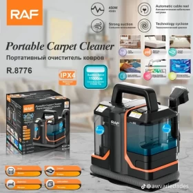 احصل على منزل وسيارة نظيفين تمامًا مع جهاز RAF المحمول لتنظيف السجاد والمفروشات. يتميز بقوة شفط عالية 11000Pa، وتنظيف بالبخار، وتصميم مقاوم للماء بمعيار IPX4، ليكون الحل الأمثل للأرائك، السجاد، والمقاعد الداخلية للسيارة.