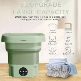 مثالية للملابس الخفيفة، والسفر، والطلاب، أو لغسل الملابس الحساسة، تقدم لك هذه الغسالة القابلة للطي راحة تامة وكفاءة عالية في تصميم صغير ومرن. يمكن استخدامها أيضاً لغسل الملابس الداخلية، ملابس الأطفال، الجوارب، وحتى الفواكه والخضروات!