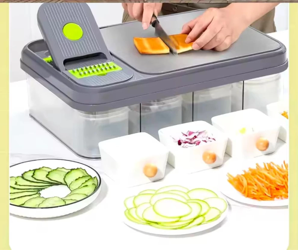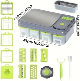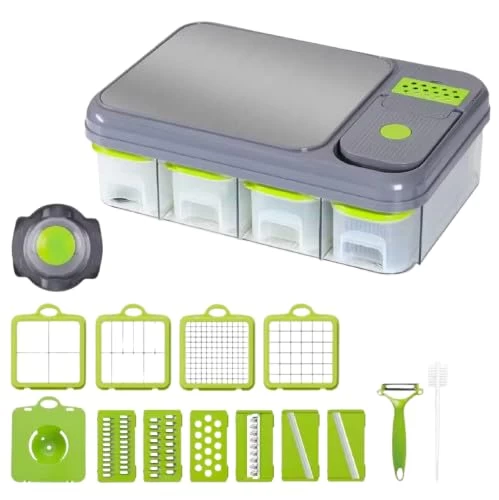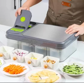 اجعل تحضير الطعام أسرع وأسهل وأكثر متعة مع قطاعة الخضار المتعددة 13 في 1. تحتوي على 8 شفرات من الستانلس ستيل قابلة للتبديل، و 4 حاويات تخزين، مع مقشرة و فرشاة تنظيف. مثالية لتقطيع وتقطيع مكعبات وبشر الخضروات والفواكه بكل سهولة. أداة أساسية للمطابخ العصرية والعائلات المشغولة ومحبي الطبخ الصحي.