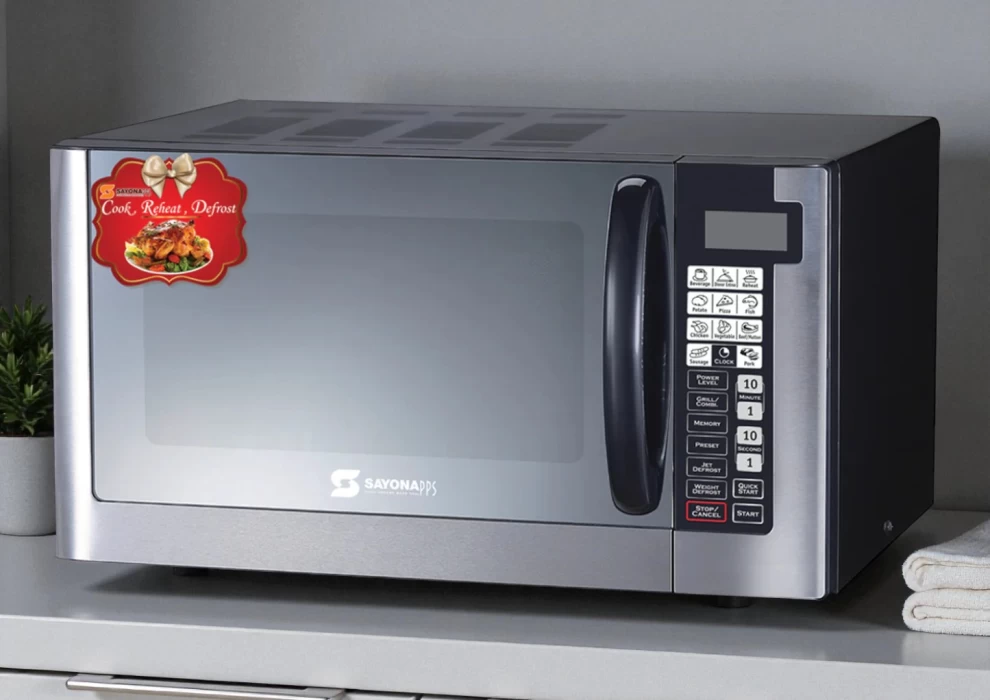 اجعل الطهي سريع وسهل وفعال مع ميكروويف SayonaPPS. مثالي لتسخين الطعام، إذابة الثلج، والطهي، مناسب للمطابخ المنزلية، المكاتب، السكن الجامعي أو الشقق الصغيرة.