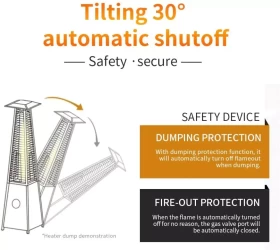 استمتع بالدفء في الهواء الطلق مع دفاية الغاز الهرمية ب3 أنابيب زجاجية، التي توفر 13,000 واط من الحرارة للحدائق، التراسات، والمناسبات الخارجية. تصميمها الهرمي مع 3 أنابيب زجاجية مرئية يجمع بين الأناقة والكفاءة في توزيع الحرارة.