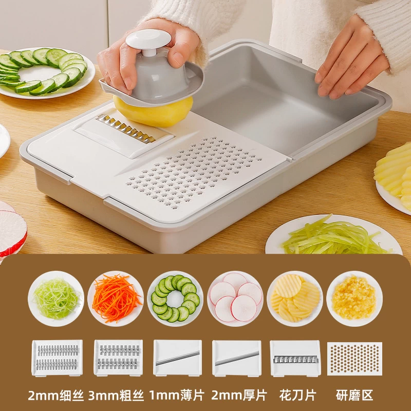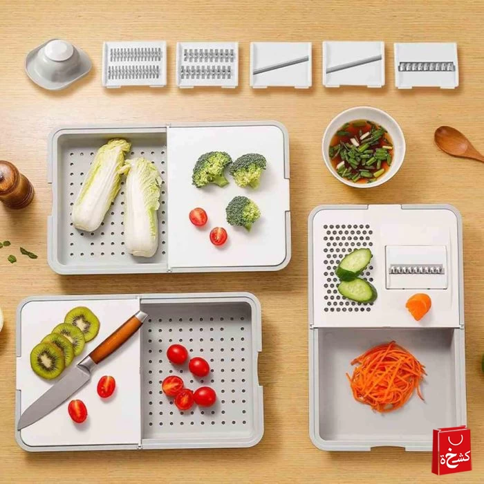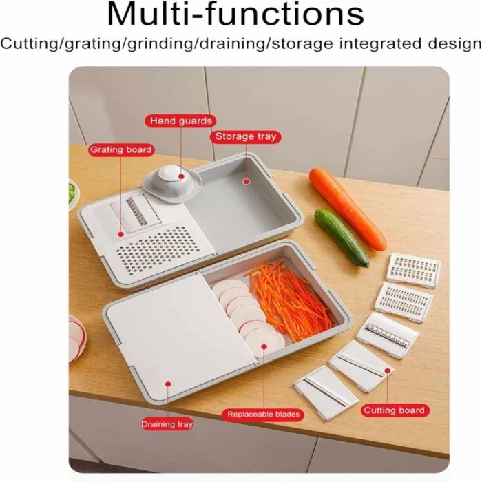 قطّاعة ومقشرة خضار متعددة الاستخدامات مع صينية تخزين – 5 شفرات