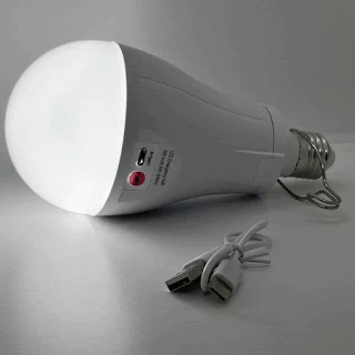 هذه اللمبة القابلة للشحن مصممة لتوفير إضاءة مستمرة حتى أثناء انقطاع الكهرباء. تعمل كمصباح عادي عند توصيلها بالكهرباء، وتقوم بشحن بطاريتها تلقائيًا لاستخدامها في حالات الطوارئ. كما يمكن استخدامها بشكل مستقل كمصدر إضاءة محمول.