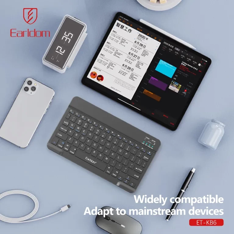 ⌨️ كيبورد Earldom KT-KB6 بلوتوث لاسلكي قابل للشحن – متعدد اللغات | يدعم iOS و Android و Windows