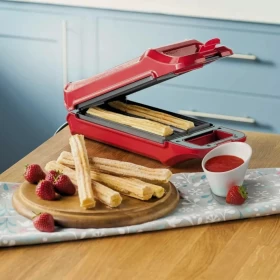 استمتع بمذاق التشوروز الإسباني الطازج والمقرمش في راحة منزلك مع ماكينة تحضير التشوروز! خلال 5 دقائق فقط، يمكنك إعداد حتى 4 أعواد من التشوروز الذهبي المقرمش – مثالية للمشاركة مع العائلة أو لتدليل نفسك. رشها بالسكر والقرفة واغمسها في الشوكولاتة الذائبة وتمتّع بمتعة حقيقية!