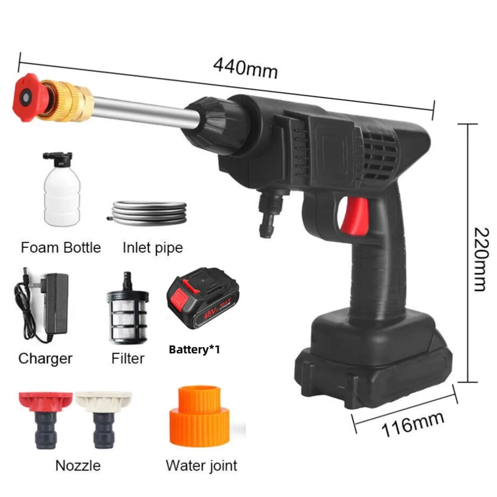 Upgrade your cleaning routine with this high-performance cordless pressure washer! Designed for washing cars, vehicles, and watering gardens, this powerful 48V pressure cleaner features a durable copper motor and a high-capacity battery for efficient, long-lasting operation. Its lightweight and compact design makes it easy to carry and use, while the multi-function nozzle offers different spray modes to suit all your cleaning needs. Whether you need to wash your car, clean outdoor furniture, or water your garden, this versatile pressure washer is the perfect solution!