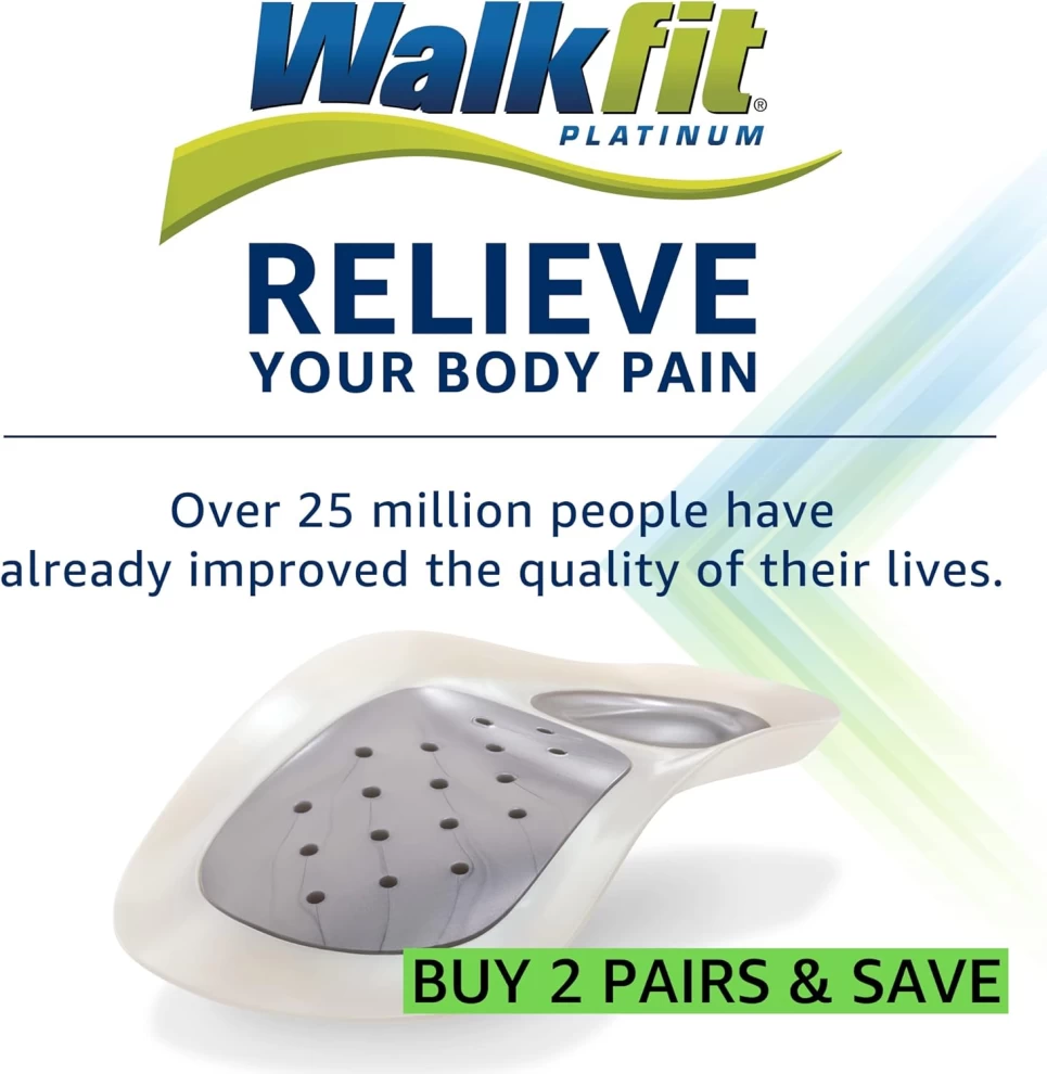 Experience superior comfort and instant pain relief with the WalkFit Platinum Orthotic Insoles. Designed to support the natural shape of your foot, these insoles reduce stress on the feet, knees, hips, and lower back — perfect for daily walking, sports, or long hours on your feet.