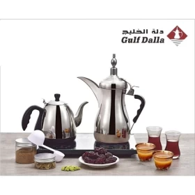 Enjoy authentic Arabic coffee and tea with the Gulf Dalla Electric Tea & Coffee Set 1600W. Designed to combine traditional Gulf elegance with modern electric performance, this powerful set heats quickly and keeps your beverages warm for serving guests in style. Perfect for homes, offices, and gatherings.